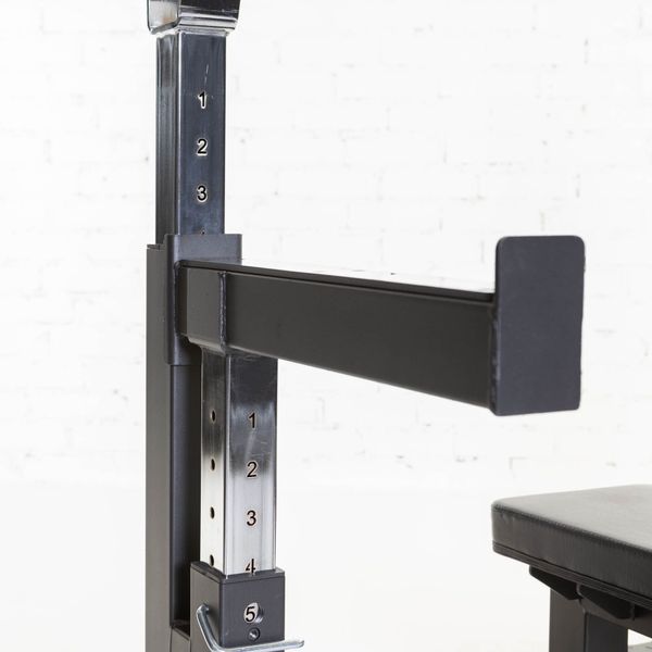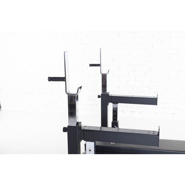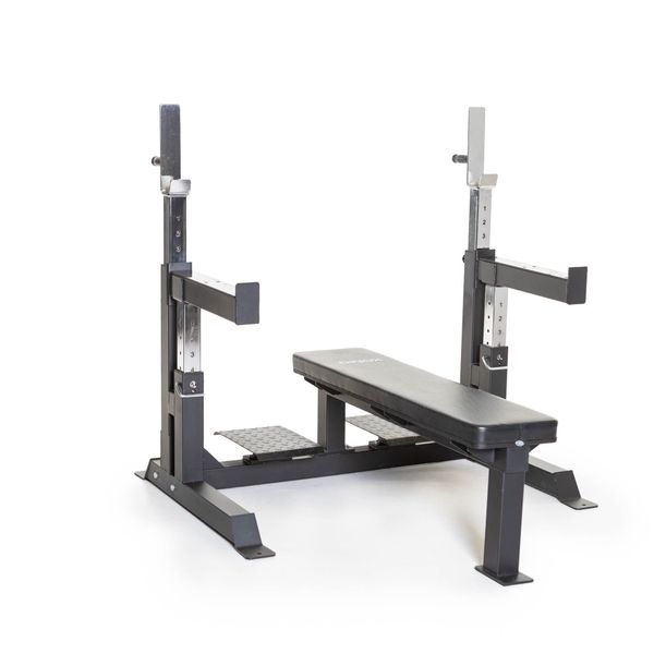 Jämäkkärakenteinen Penkkipunnerruspenkki, jossa avustajalle omat metalliset seisontajalustat. Penkissä on hyvät säätömahdollisuudet ja korkeus-säädettävät turvaraudat tuovat turvallisuutta myös yksin harjoiteltaessa.