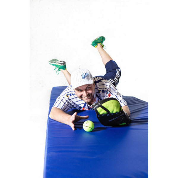 Rullattava syöksymatto pesäpallon tai lentopallon syöksyharjoitusten tekemiseen. Pinta on liukasta Oxford -kangasta liukuominaisuuksien parantamiseksi. Alapinta liukuestekangasta. Sopiva pehmeys.