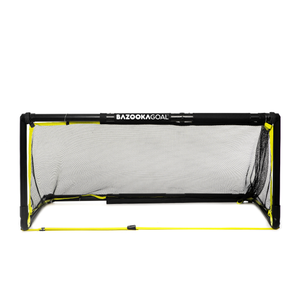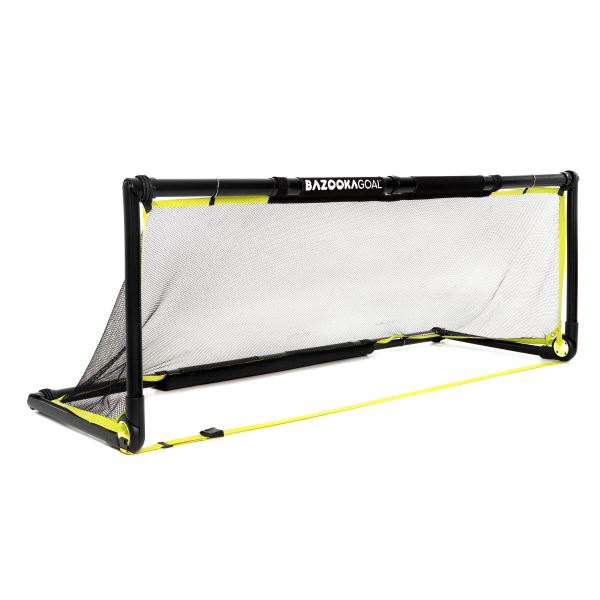 Kiinteästä rungostaan huolimatta BazookaGoal on myös turvallinen: se on suunniteltu taittumaan taaksepäin törmäystilanteissa. Tämä maali on tehty kestävistä materiaaleista ja se kyllä kestää rankassakin käytössä. Soveltuu erityisen hyvin taitojen harjoitteluun ja 1v1, 2v2 ja 3v3 -otteluihin! Huomioithan, että tässä mallissa on säädettävä poikkipuu. Voit valita joko 1,2, 1,5 tai 2 metrin pituuden.
