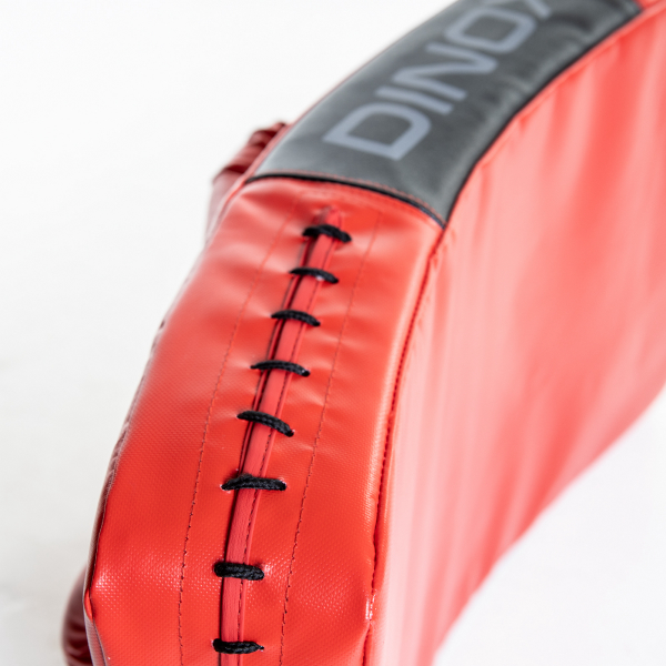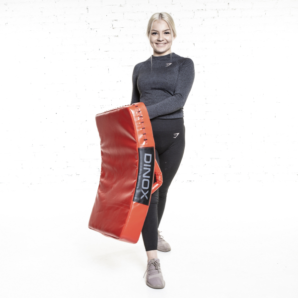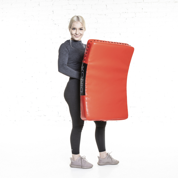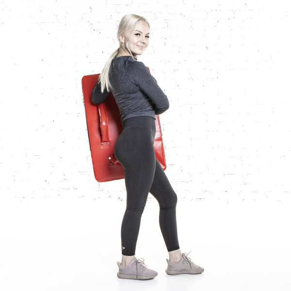 Potkutyyny pysyy tukevasti käsissä napakoiden, mutta pehmustettujen otekahvojen ansiosta. Otekahvoja on iskutyynyssä useita, jolloin otetta on helppo vaihtaa iskukorkeuden huomioiden. Kaareva muotoilu.