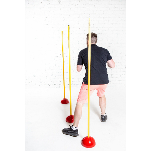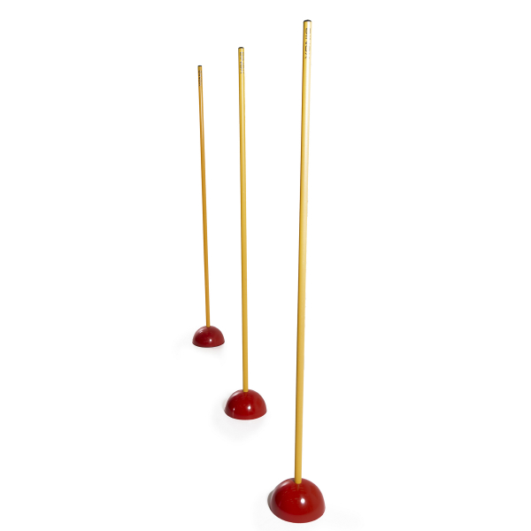 Sopii kaikkeen pujotteluharjoitteluun. Keppien painona punainen puolipyöreä alusta, joka pitää kepit tukevasti pystyssä.