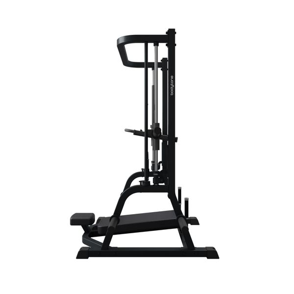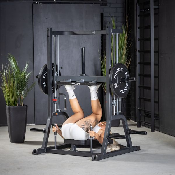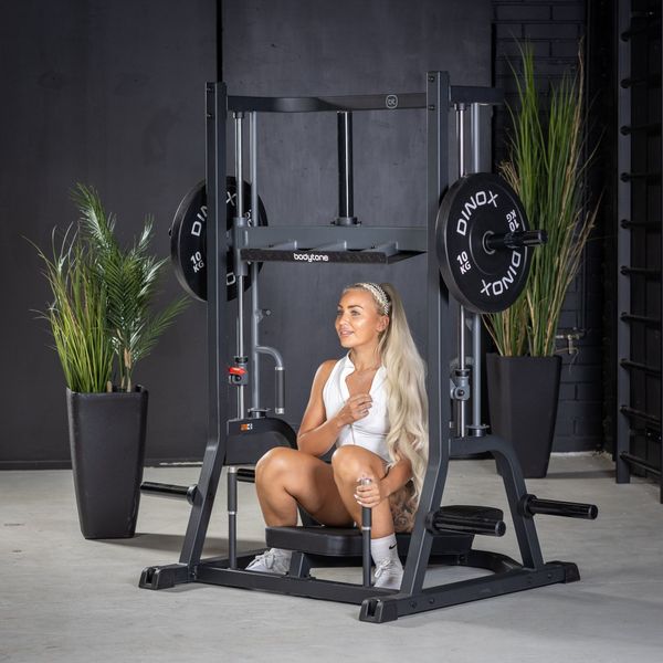 Pystyprässi Bodytone SG54 on suunniteltu kaikentasoisille käyttäjille jalkalihaksien harjoittamiseen. Pystyprässi, eli Vertical Leg Press, tarjoaa uudenlaisen tavan harjoittaa jalkalihaksia verrattuna perinteiseen vaakatason jalkaprässiin. Yksi merkittävimmistä eroista pystyprässin ja perinteisen prässin välillä on liikeradan suunta - pystyprässissä liike suoritetaan selälleen ja kelkkaa työnnetään jaloilla ylöspäin, kun taas perinteisessä jalkaprässissä sama liike tapahtuu istualteen vaakatasossa. Tämä muutos asennossa vaikuttaa miten eri osat jalkalihaksista aktivoituvat. Pystyprässillä voi siis kohdistaa harjoituksen paremmin etu- ja takareisilihaksiin sekä pakaralihaksiin, joka voi auttaa kehittämään jalkojen voimaa ja lihaskuntoa tehokkaammin. Lisäksi pystyprässin avulla selkänojaan nojaaminen ja jalkojen työntäminen ylöspäin voi vähentää selän rasitusta verrattuna perinteiseen vaakatason jalkaprässiin, jossa selkä on alttiimpana suuremmalle paineelle. Laite on levypainokuormitteinen ja sen kelkan latauskapasiteetti on 225 kg (75 kg / pidike).