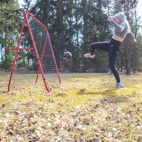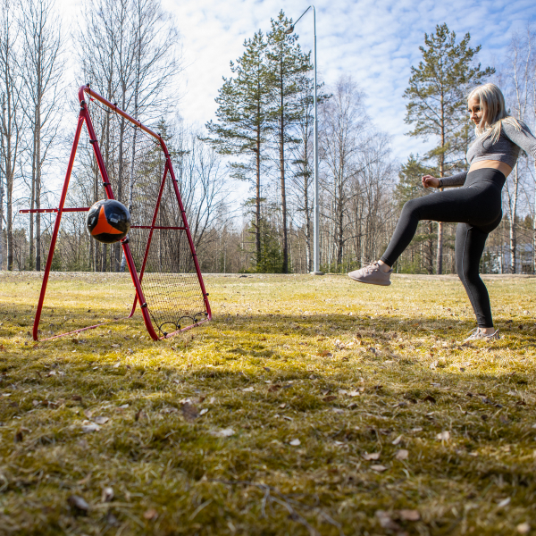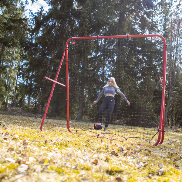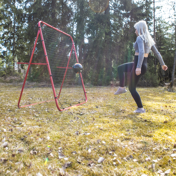 Erinomainen myös kehittämään tuntumaa pallon kanssa. Se palauttaa syötöt tai heitot ja toimii näin pallonhallinnan kehittäjänä. Säädettävissä eri kulmiin. Nopea kasata.