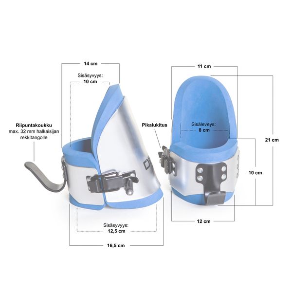 Dinox Riipuntakengät, eli Inversion Boots, ovat mainio väline selän ja vatsalihasten vahvistamiseen ja venyttämiseen. Riipuntakengillä roikutaan rekkitangosta ylösalaisin ja tätä menetelmää kutsutaan inversiohoidoksi. Inversiohoidolla on havaittu suotuisa vaikutus varsinkin istumatyön rasittamalle keholle, erityisesti selkärangalle. Näin ollen riipuntakengillä on kehoa huoltava vaikutus. Lisäksi roikkuminen voi nopeuttaa urheilusuorituksen jälkeistä palautumista. Riipuntakengissä on mukava ja tukeva vaahtomuovipehmuste ja riipuntakengät lukitaan nilkkojen ympärille helppokäyttöisellä pikalukituksella. Riipuntakenkien riipuntakoukut sopivat max 32 mm halkaisijan rekkitangoille. Riipuntakenkien max kantavuus on 100 kg.
