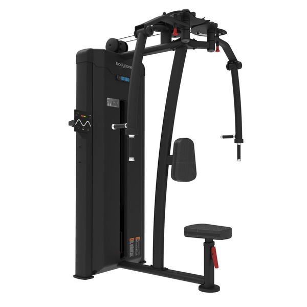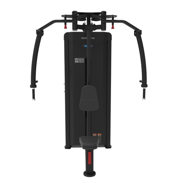 Kuntosalikäyttöön soveltuva Rintalihas- ja takaolkapäälaite 107kg painopakalla tarjoaa laadukkaan käyttökokemuksen sen viimeistellyn laadun, rakenteen vakauden ja verhoilun kestävyyden ansiosta.