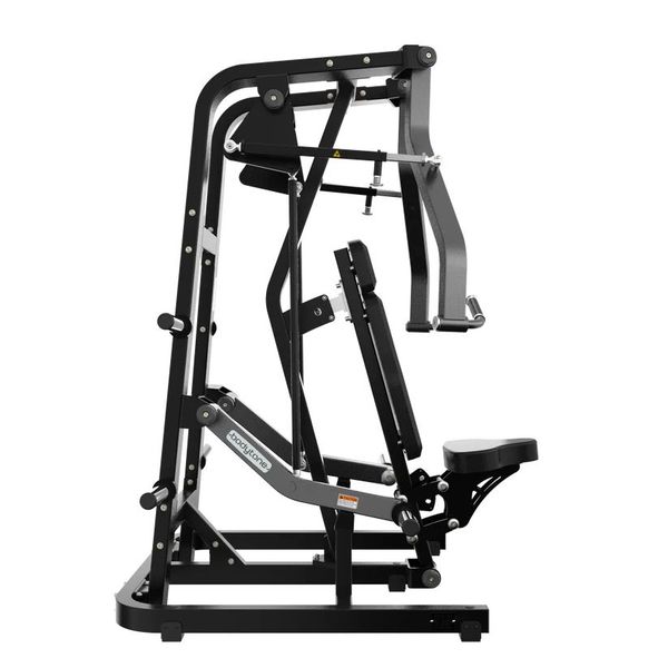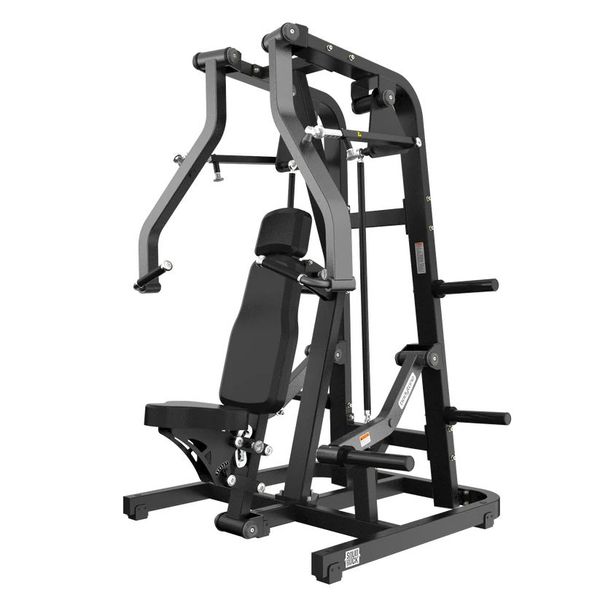 Kuntosalikäyttöön suunniteltu hiiliteräksestä valmistettu rintaprässi, jossa isolateraalinen liikerata mahdollistaa harjoittelun myös yhtä kättä kerrallaan ja tukee tasapainoista voimantuottoa. Levypainokuormitteinen rakenne tarjoaa selkeän progression aina 250 kiloon asti, ja antibakteerinen Pebbled Leather -verhoilu kestää kulutusta ja kosteutta kovassa käytössä.