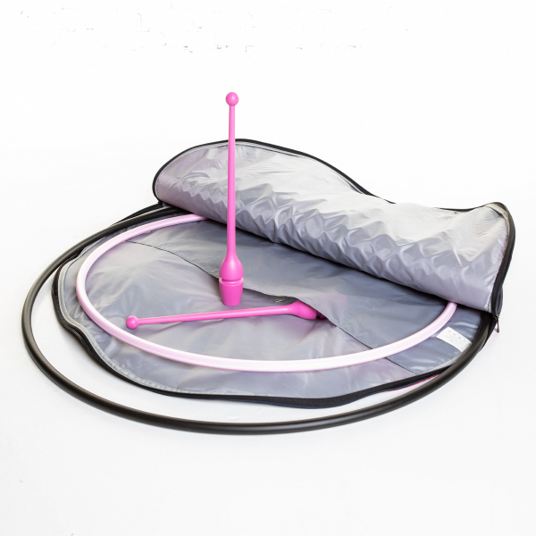 Tässä välinekassissa voit kuljettaa tai säilyttää rytmisen voimistelun välineitä, kuten vanteita, keiloja ja nauhoja. Ø 89 cm vanteita laukkuun mahtuu yksi, mutta pienempiä mahtuu useampi.