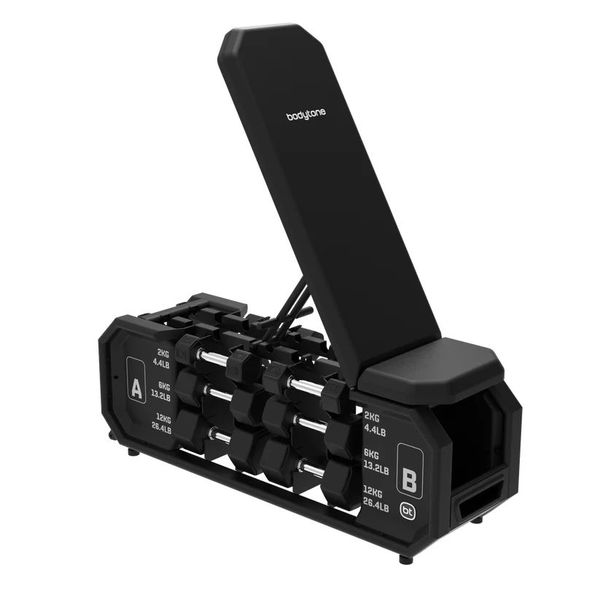 Bodytone PROBOX on kompakti kotisalin treenipenkki, joka yhdistää säädettävän harjoituspenkin, käsipainot ja säilytystilan yhteen käytännölliseen kokonaisuuteen. Tämä tekee harjoittelusta helppoa, pitää välineet järjestyksessä ja mahdollistaa monipuolisen treenin pienessäkin tilassa. Sisältää 6 paria käsipainoja.
