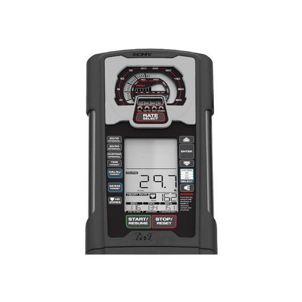 Selkeästä ja helppolukuisesta konsolista seuraat harjoittelulle tärkeitä tietoja kuten harjoitteluaika, matka, kalorit, Kierrosluku (RPM), Watit, syke ja nopeus. Lisäksi saat harjoittelun keskiarvoista palautteen sekä harjoittelutulokset. AD8 on lisäksi varustettu 9 harjoitusohjelmalla: Manuaalinen tila, 20/10 intervalli, 30/90 intervalli, kustomoitu intervalli, aikatavoite, sykealue, kaloritavoite sekä matkatavoite -ohjelmilla. Integroidun kalorikulutus mittarin avulla seuraat harjoittelun tehokkuutta sekä poltettuja kaloreita. Sykemittausta varten voit yhdistää oman sykevyösi laitteeseen (5kHz).