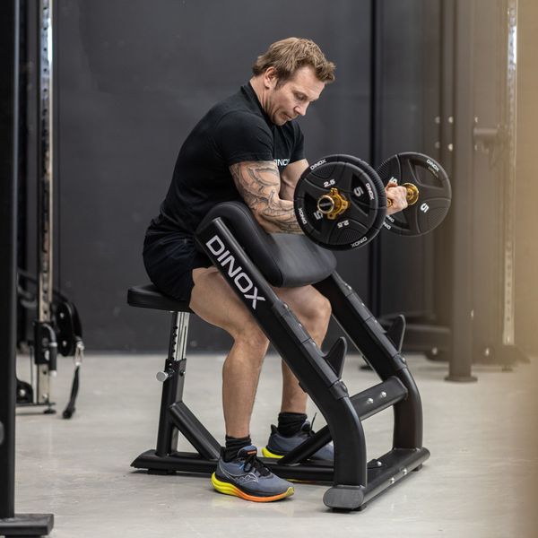 Jämäkkä ja korkeussäädettävä harjoituspenkki tehokkaaseen hauisharjoitteluun. Vakaa runko ja paksu pehmuste takaavat miellyttävän ja hallitun treenituntuman myös kovassa kuntosalikäytössä.