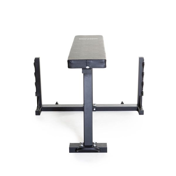 Penkin pehmusteosa on 128 cm pitkä, 30 cm leveä ja 7 cm paksu, joka mahdollistaa monen kokoisille treenaajalle tukevan makuupinta-alan penkillä. Keinonahkapinta mahdollistaa helpon pinnan puhtaanapidon. Pehmuste on jämäkkä, mutta juuri riittävän joustava saadaksesi optimaalisen liikeradan treeniliikkeisiisi. Tankopitimet ovat sijoitettuna leveälle, joten tanko ei kippaa isommillakaan painoilla.
