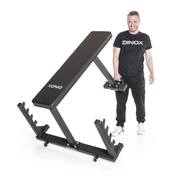 Penkin runko on pulverimaalattu metallia, joten penkki on laatuvalinta pitkäaikaiseen käyttöön. Siirtopyörien ja siirtokahvan ansiosta penkkiä on helppo liikutella.
