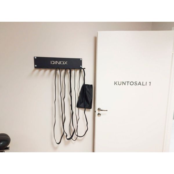 Säilytä vastuskuminauhat, hyppynarut, taljakahvat, lukot sekä muut pienet urheiluvälineet siististi seinällä. Seinätelineessä on 8 ripustuskoukkua. Mitat: S 11cm, K 7,5cm, L 50cm.