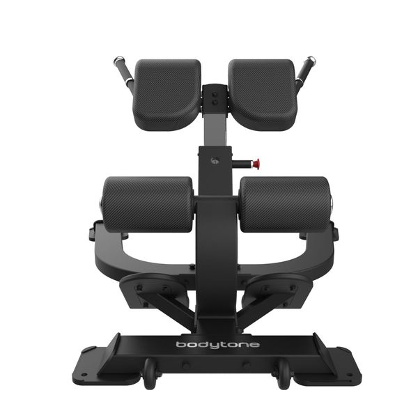 Bodytone FBC12 Selkäpenkki on suunniteltu alaselän, pakaroiden ja takareisien lihaksien harjoituksiin. Treenaaminen sujuu kehonpainolla, tai jos se tuntuu liian kevyeltä, voi syliin ottaa esimerkiksi kahvallisen levypainon tuomaan lisävastusta. Penkin lantiotuki on säädettävissä yhdeksään eri korkeuteen, joten se on mukautettavissa käyttäjän pituuden mukaan. Lantiotuki ja jalkatuet ovat päällystetty kulutusta kestävällä, antibakteerisella ja napakalla keinonahalla, joka kestää hyvin myös hikoilua, ja se on helposti puhdistettavissa. Laitteen pinnoitteen muodostaa kestävä kolmen maalikerroksen yhdistelmä. Penkissä on siirtopyörät, joten sen siirtäminen on helppoa.