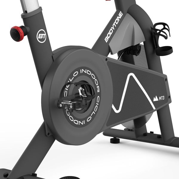 Bodytone MT3 spinningpyörällä on markkinoiden pehmein ja hiljaisin teknologia magneettisen jarrun sekä Poly-V -hihnan ansiosta. Tämän ammattikäyttöön tarkoitetun spinning kuntopyörän suosio perustuu sen korkeaan laatuun ja edulliseen hintaan. Pyörässä on edessä kuljetuspyörät, joten pyörän siirtäminen on helppoa.