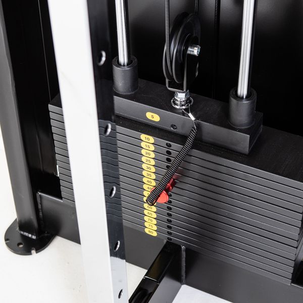 Erittäin vähän tilaa vievä ja vankkarakenteinen Pystytalja kovaan kuntosalikäyttöön. Taljan saa aivan seinään kiinni, joten se vie vain vähän tilaa. Seinätaljan yläosassa kiinnitysreikä seinään kiinnitystä varten, joten laite pysyy turvallisesti paikoillaan pienestä syvyydestään huolimatta. Talja on korkeussäädettävä ja sen voi asettaa 19 eri korkeudelle harjoituksen mukaan. Pystytaljassa on 120 kg:n painopakka ja se soveltuu täydellisesti kaupalliseen kuntosalikäyttöön. Huomioitavaa toki on, että taljankorkeus-säädön vuoksi hihnat kiertävät taljapyörät niin, että todellinen maksimikuormitus on puolet pakan painosta eli 60 kg. 60 kg on kuitenkin enemmän kuin riittävä kuormitus liikkeisiin mitä seinätaljoilla yleisesti tehdään.
