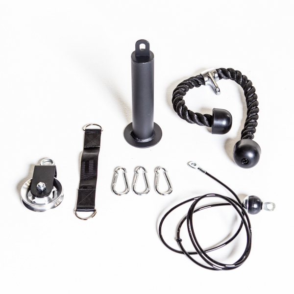 Dinox Taljasetti Loading Pinillä, vaijerilla, taljapyörällä ja taljahihnalla saat helpon ja nopeasti käyttöönotettavan taljalaitteen, johon lisäät vain 50 mm keskireijän levypainoja treenitarpeesi mukaan. Maximissaan kuitenkin 100 kg. Vetorautoja vaihtamalla, sekä levypainoja lisäämällä treenin teho on varsin monipuolinen. Loistava Taljasetti ojentaja-, core-, sekä selkälihasten lihaskuntoharjoitteluun. Lisäksi setin rakenne saa treenaajan keskittymään puhtaaseen ja hallittuun liikerataan, jolloin levypainon liike pysyy myös optimaalisen vakaana vaijerin päässä.