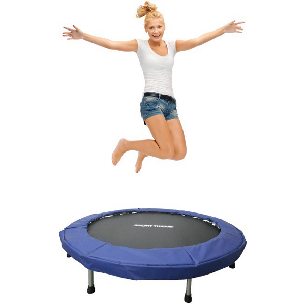 Minitrampan reunoja peittää paksu sininen peite, jonka helma ylettyy myös hiukan trampoliini jalkojen päälle. Tämä suojaa sinua mahdollisilta iskuilta.