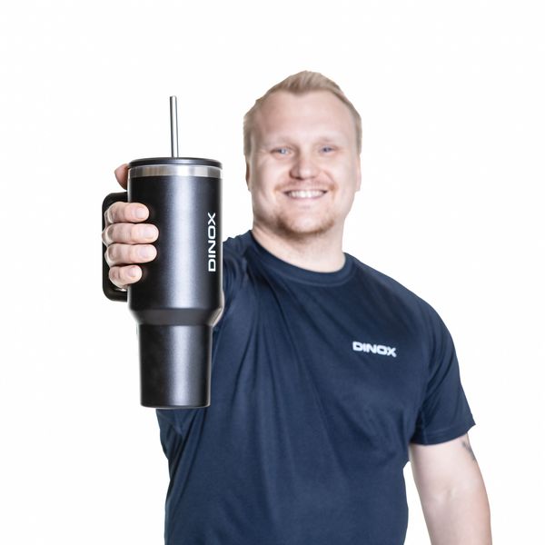 HUOM! Vaikka kansi onkin suljettava, ei rakenne ole pillin vuoksi täysin tiivis ylösalaisin käännettynä. Dinox Steel Tumbler on suunniteltu ensisijaisesti juomisen helppoutta ja päivittäistä käyttöä ajatellen, ei täytenä repussa kuljetettavaksi.