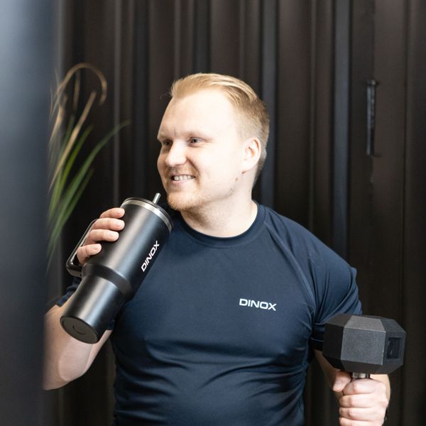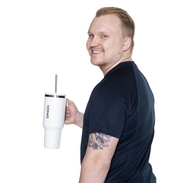 Dinox Steel Tumbler -termosmuki yhdistää trendikkään muotoilun ja käytännöllisyyden ollen täydellinen valinta aktiiviseen arkeen, toimistolle tai treenimatkoille. Kaksoisseinärakenteinen teräsmuki pitää juoman pitkään oikean lämpöisenä, olipa kyse jääkahvista, vedestä tai kuumasta teestä. 1200 ml koko on ihanteellinen päivittäiseen käyttöön, sillä se on karkeasti puolet aikuisen ihmisen päivittäisestä nestetarpeesta. Teräspillillä varustettu kansi estää juoman läikkymisen liikuttaessa paikasta toiseen. Ergonominen kahva tekee mukista helpon kantaa ja kavennettu pohja sopii useimpien autojen mukitelineisiin. Teräksinen juomapullo on pitkän käyttöikänsä ansiosta muovista pulloa ekologisempi valinta eikä siitä liukene mikromuoveja juomaan. Mukana toimitetaan pillinharja helpottamaan pillin puhdistusta.