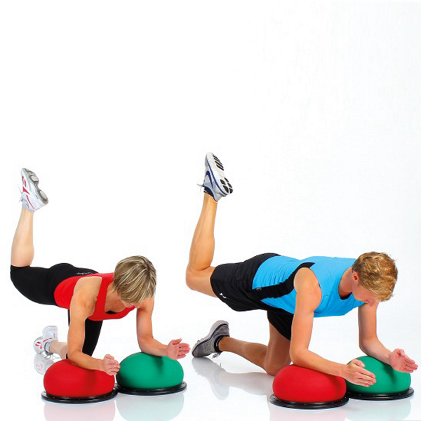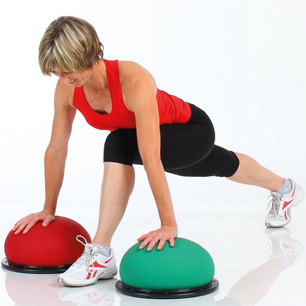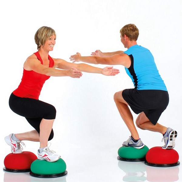 Togu Double Jumper näyttää puolipyöreältä jumppapallolta, jonka alla on pyöreä muovialusta. Poikkeuksellisilla harjoitusvälineillä treenaat niveliä säästäen niin voimaa, kestävyyttä kuin koordinaatiotakin. Kaksi välinettä mahdollistaa lukuisat erilaiset harjoitukset. Voit vaikkapa rakentaa temppuradan tai harjoitella askelyhdistelmiä. Koska tyynyt ovat erivärisiä, askelien muuttaminen käy myös mentaaliharjoittelusta, kun joudut miettiä, minkä väriselle tyynylle kulloinkin kuuluu astua.