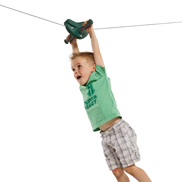Vaijeriliukuun on saatavilla lisävarusteena köysiradan istuin, jolla lapsi voi nauttia hauskan rennosta matkasta köysiradan päästä päähän istuen.