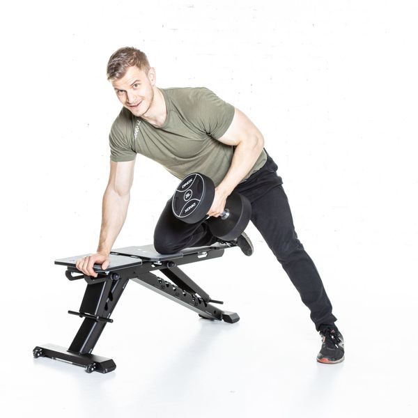 Vinopenkin kulmien säädettävyys mahdollistaa moneen eri harjoituksen tekoon. Selkänojan ollessa ylhäällä voit tehdä pystypunnerruksia selkä tuettuna. Kulman ollessa puolivälissä onnistuu esimerkiksi vinopenkkipunnerrukset käsipainoilla. Penkin selkänoja on 30 cm leveä, joten saat hyvän lapatuen tasapenkillä rintapunnerruksissa käsipainoilla tai tangolla treenitelineessä.