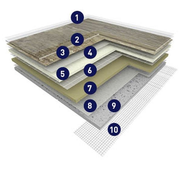 Vinyylimatto, jossa 15 % koostumuksesta käytetty kierrätysmateriaalia. Vinyylimatto itsessään on 100 % kierrätettävä. Asennus onnistuu ilman liimaa, joten vinyylimatto on myös tarvittaessa helppo poistaa.