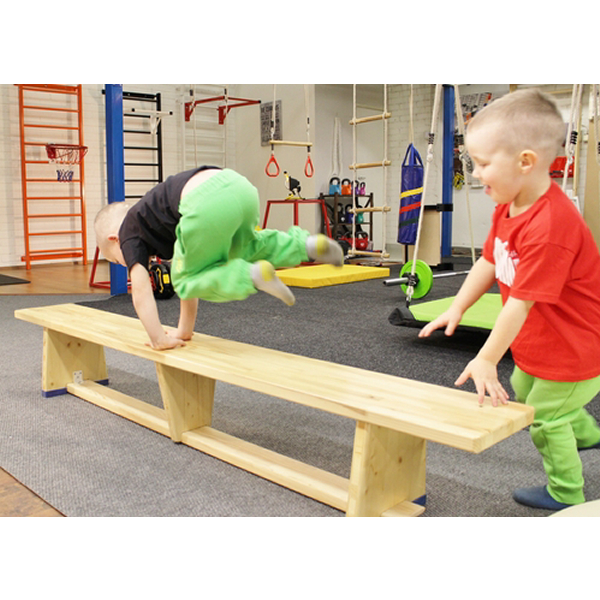 Perinteinen tukeva voimistelupenkki 200 cm, jossa on kumitassut pidon takaamiseksi.