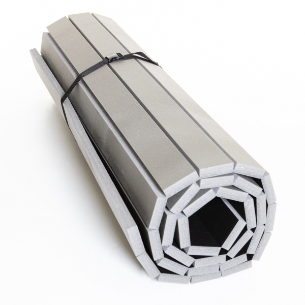 Helposti kasaan rullattava tatami-tekstuuripintainen matto. Vinyylimattoon on tehty alapuolelle taitteet, jolloin sen rullaaminen kasaan on helpompaa. Matto on helppo ottaa myös käyttöön rullaamalla se auki, eikä maton kulmat nouse ylös.